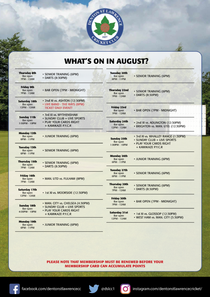 Weekend Fixtures – 3rd / 4th August